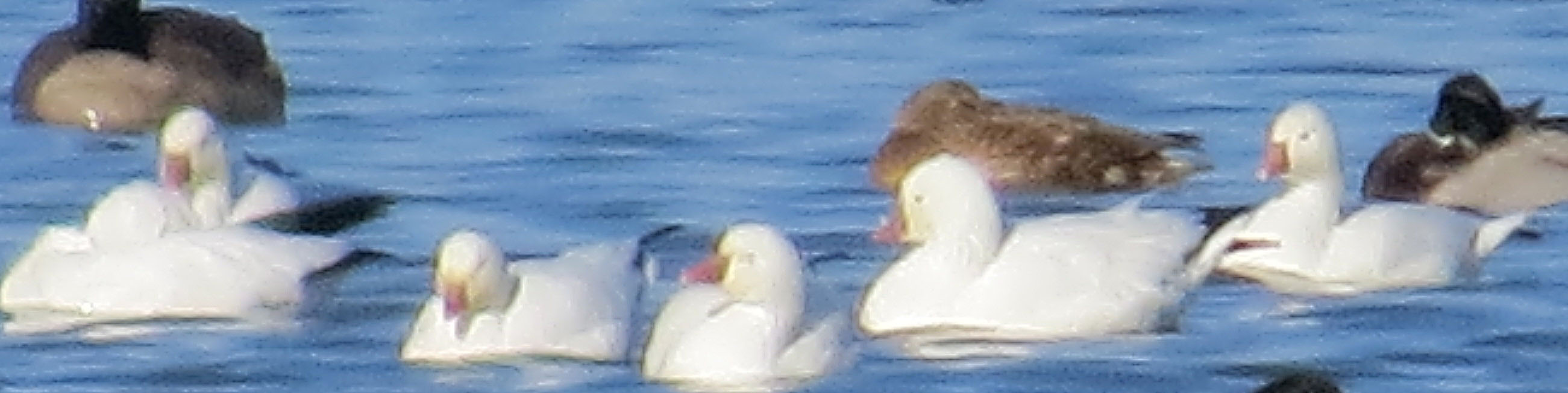 I counted 16 Ross's geese around 2:30 pm today at the Muskegon Wastewater. They were in one group on the south side of the east lagoon with thousands of Canada geese and a few scattered snow geese. Four photos below.